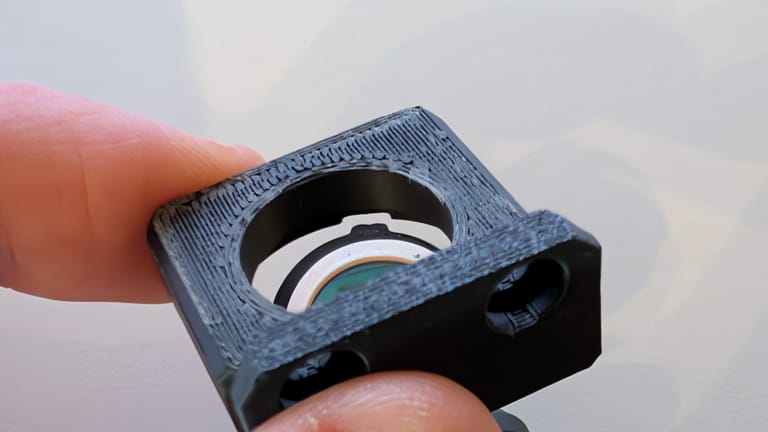 Ota nokan alaosa käteen niin että linssi syvennys on ylöspäin.