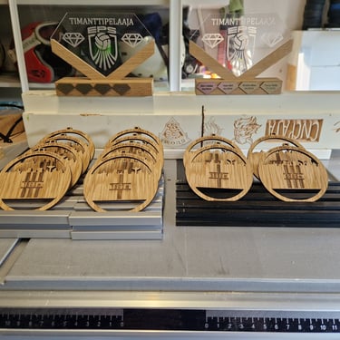 Tutustu tehtyihin CNC- ja lasertyöstöihin, 3D- tulostuksiin ja mallinnuksiin, tarraleikkauksiin ja paitapainoihin.